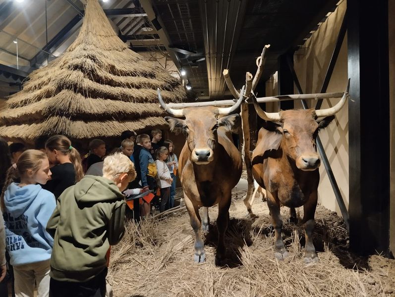 Do Roztok u Prahy jsme se vypravili na expozici Archevita, abychom poznali život v pravěku. Uvítala nás chýše postavená ze dřeva, hlíny promíchané s kousky dřeva, slámou a ovčí vlnou. Mohli jsme si osahat a potěžkat repliky pravěkého načiní – například sekeromlaty, srpy vytvořené ze špičatých opracovaných kamínků vložených do kostí a utěsněných pryskyřicí. Pole orali pomocí dřevěných rádel. Nádoby vyráběli z keramiky, vymysleli již i pece na vypalování. Na nádobách nám bylo vysvětleno, proč jsou na nich úchytky, aby se daly spustit ze stropu na kožených páscích, a to proto, aby se do nich nedostaly myši. Zajímavá byla ukázka oblečení, třeba košile z vláken kopřiv. V další části expozice jsme se dostali do pravěké osady. O oheň se starali staří lidé a děti je zásobovaly topivem. V té době měli obyvatelé pravěké osady již ochočená a zdomácnělá některá zvířata – krávy, prasata, slepice. Vtipné bylo, že na střeše číhala kočka a na ni dorážel velký pes (možná dříve vlk). Obchodník nabízel různé zboží, hlavně sůl za výrobky, které se vyráběly v dané lokalitě, třeba šperky z bronzu, maso, kůže. Ve druhém patře s videoprojekcí jsme se seznámili se smutnou historkou o smrti mladé ženy zaviněné porodem a infekcí, což asi nebylo divu, vzhledem k tomu, v jakém prostředí porod probíhal. Zahráli jsme si různé kvízy vztahující se k této době a prohlédli si nálezy z vykopávek v okolí. Jako archeologové jsme pomocí videoprojekce vykopali místo posledního odpočinku bojovníka. Výprava se nám moc líbila a hodně jsme se dozvěděli, co jsme ani neznali a neuměli si představit.