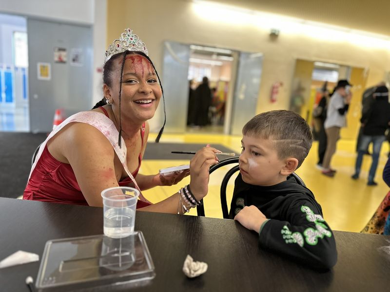 V pátek 31. října 2025 proběhl na naší škole Halloween organizovaný žáky devátých tříd. První hodinu se všechno připravovalo: chystala se stanoviště, věšela se výzdoba a lepily se plakáty. A pak to všechno začalo.