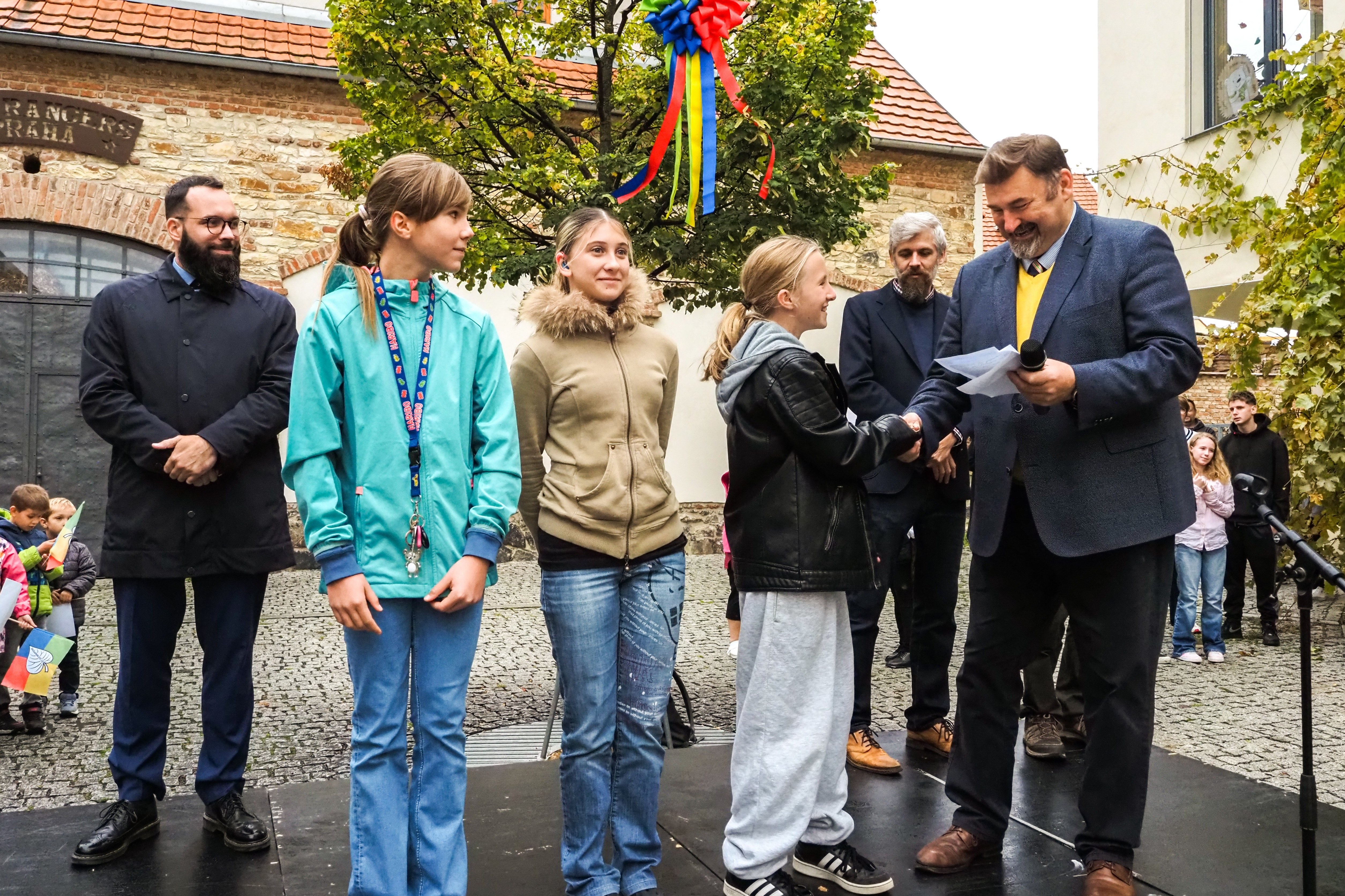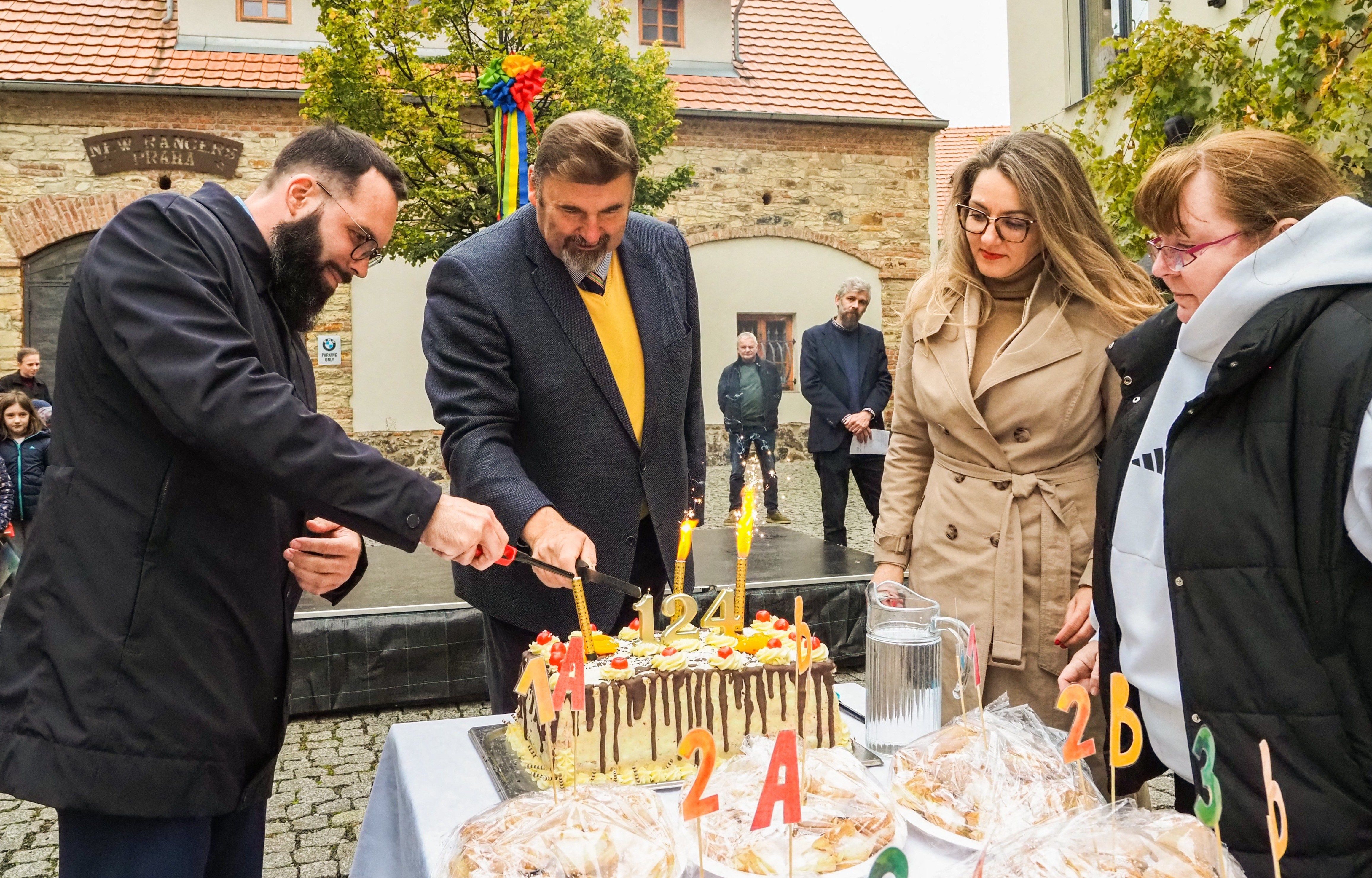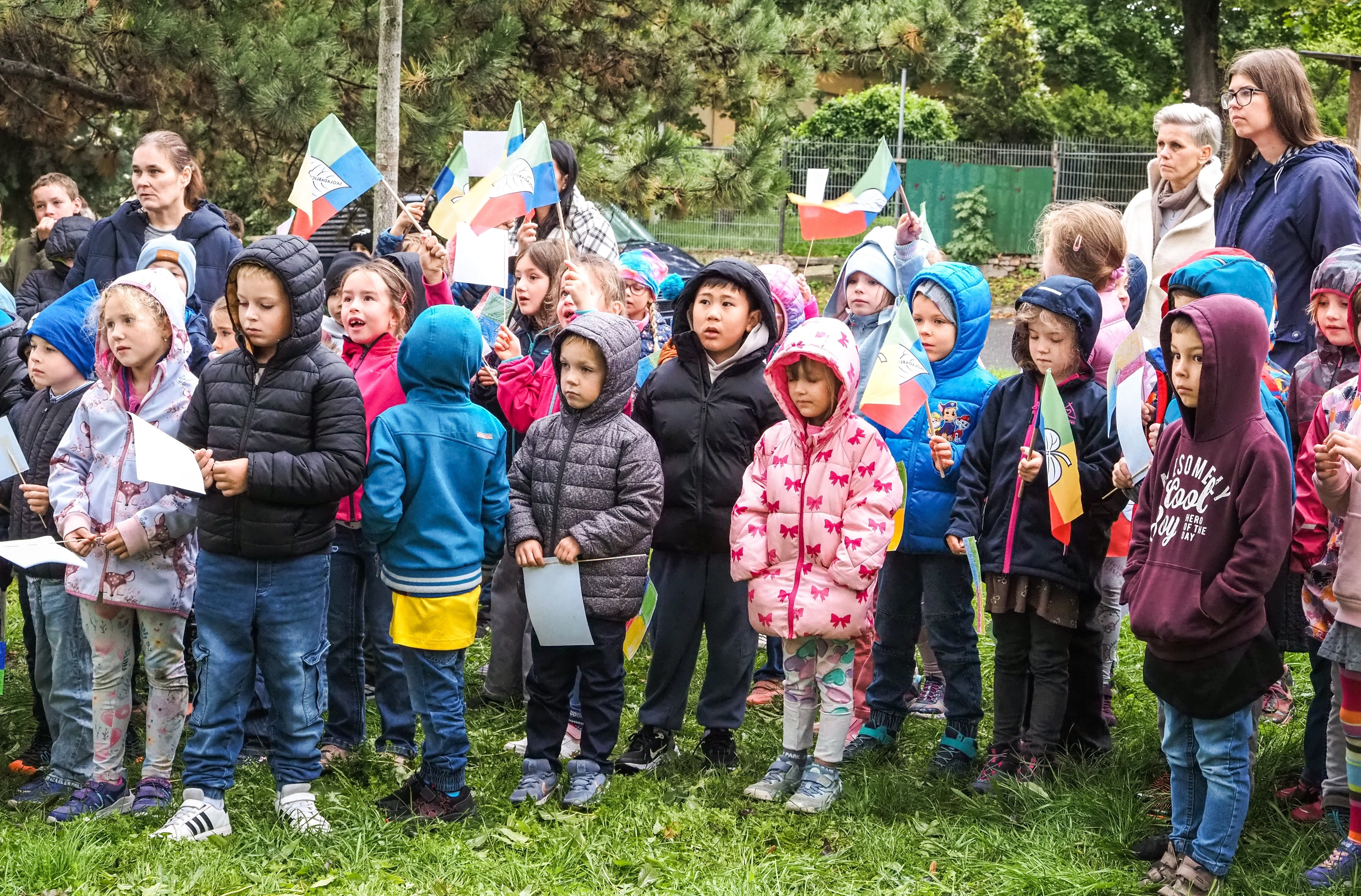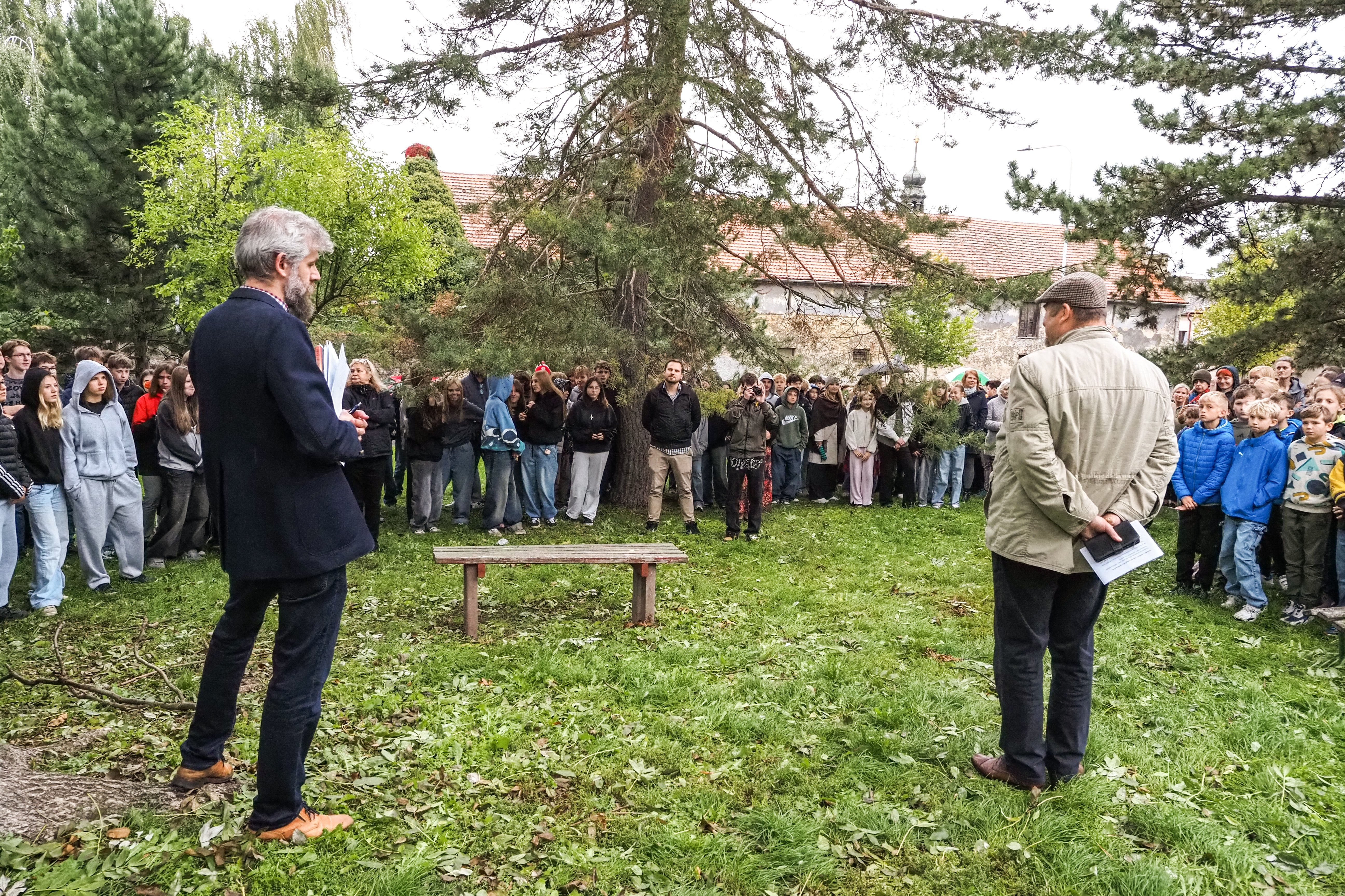 Letošní narozeninový den školy opět provázela cvičná evakuace. Shromáždění rozjívených žáků pod borovicemi u pomníku padlých se od pana ředitele nejprve dozvědělo, že jde o důležitou věc, které bychom všichni měli věnovat pozornost. Následovalo pozvání k přesunu na rynek, kde měla jako obvykle proběhnout oslava. Na ozdobených stolech čekal na každou třídu tác s minivěnečky, které připravily paní kuchařky. Učitelskému sboru se dostalo robustního vícepatrového dortu. Škole popřál vše dobré do dalších let pan starosta a paní místostarostka, která se postarala o menší pozdvižení pozdním příchodem. Nakonec v dobré náladě společně zapálili a rozkrojili narozeninový dort.