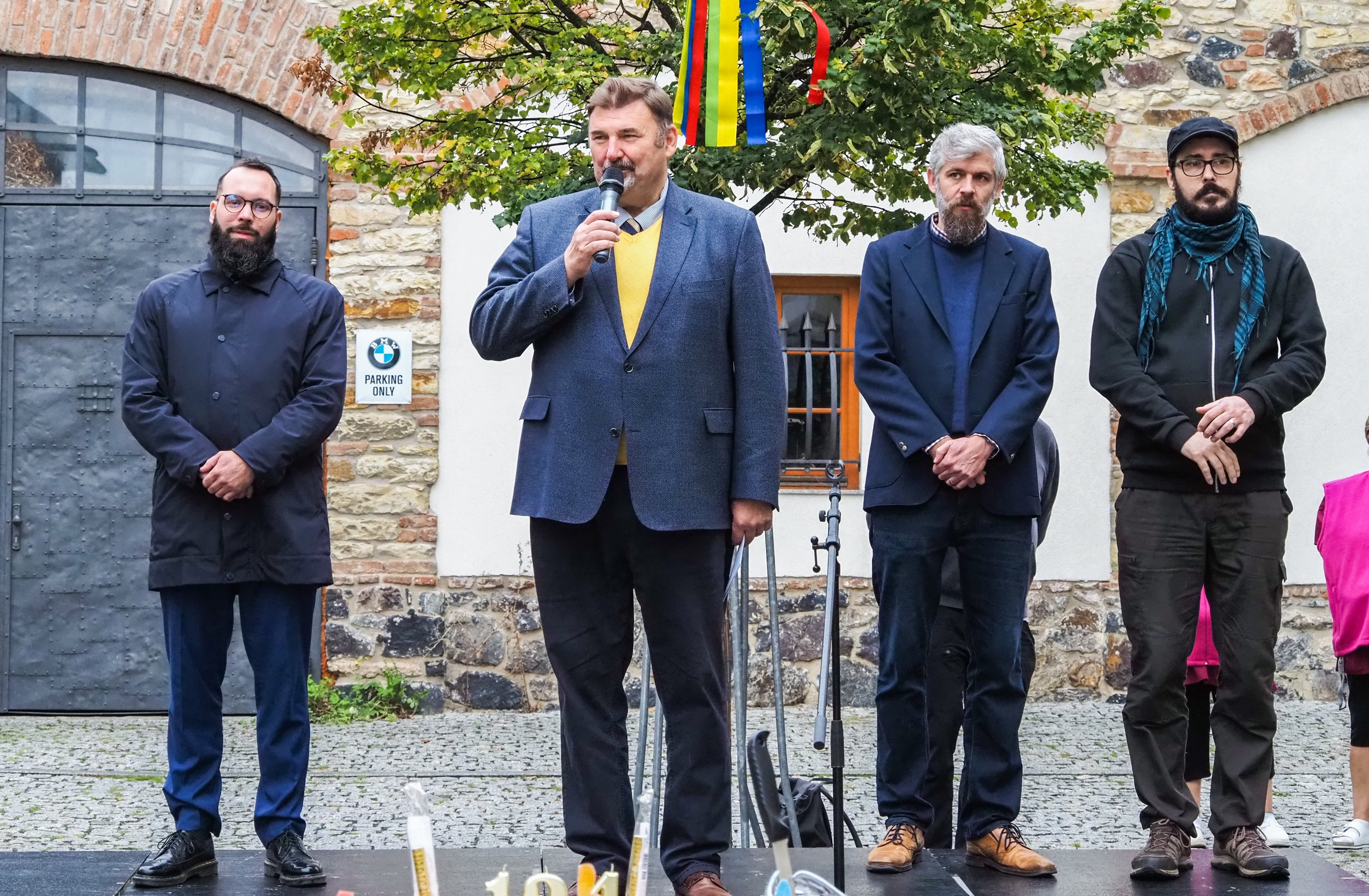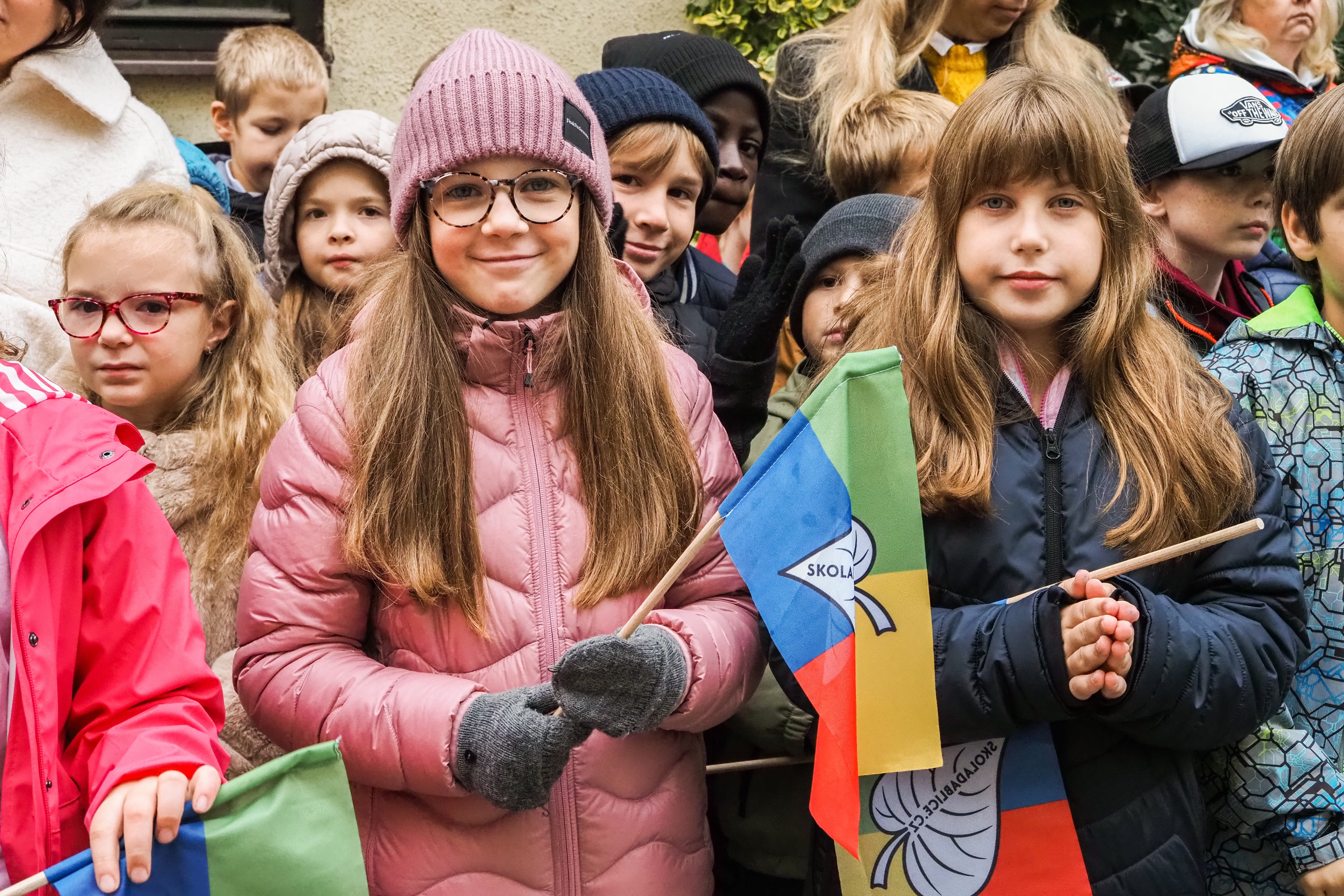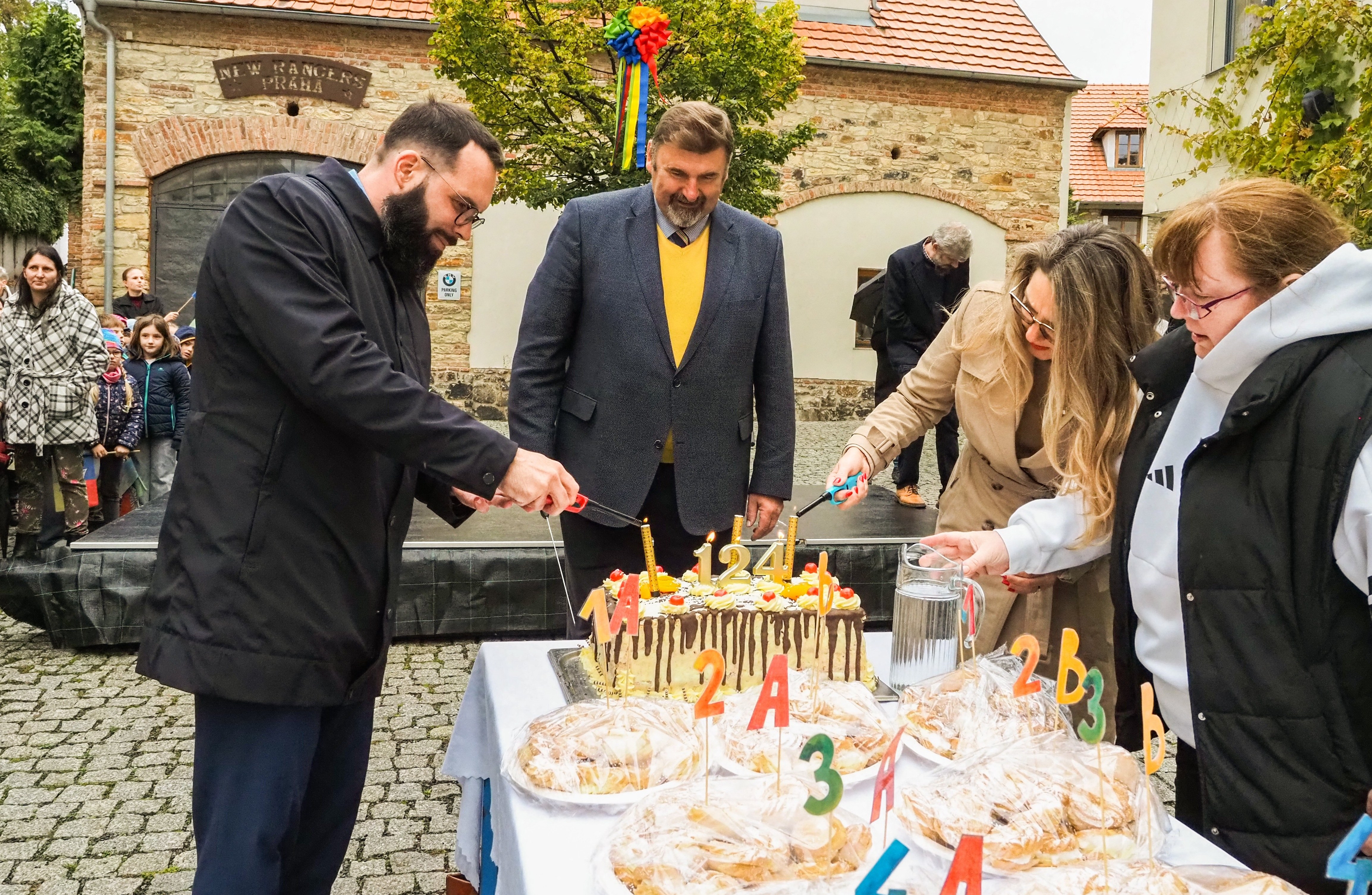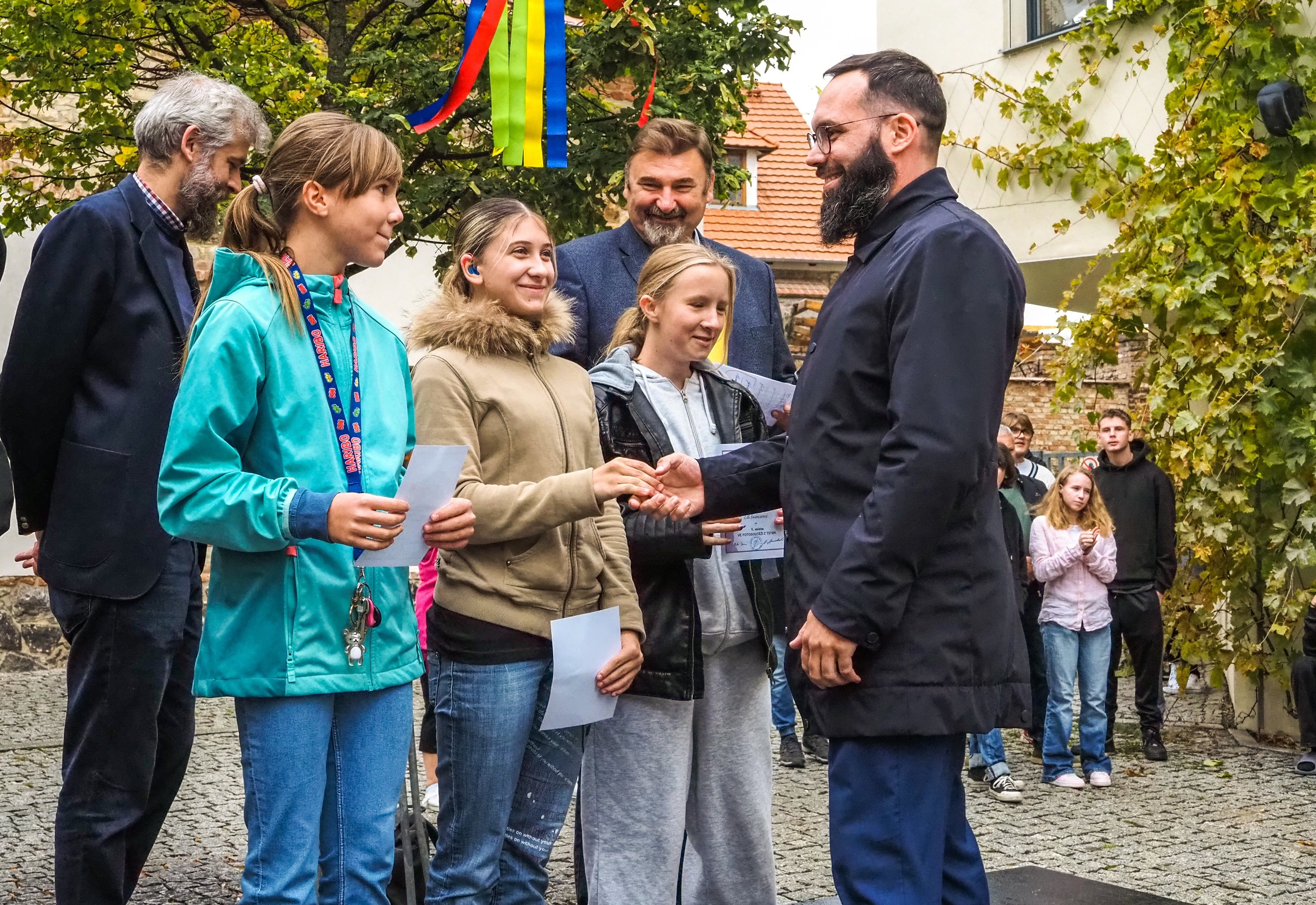 Letošní narozeninový den školy opět provázela cvičná evakuace. Shromáždění rozjívených žáků pod borovicemi u pomníku padlých se od pana ředitele nejprve dozvědělo, že jde o důležitou věc, které bychom všichni měli věnovat pozornost. Následovalo pozvání k přesunu na rynek, kde měla jako obvykle proběhnout oslava. Na ozdobených stolech čekal na každou třídu tác s minivěnečky, které připravily paní kuchařky. Učitelskému sboru se dostalo robustního vícepatrového dortu. Škole popřál vše dobré do dalších let pan starosta a paní místostarostka, která se postarala o menší pozdvižení pozdním příchodem. Nakonec v dobré náladě společně zapálili a rozkrojili narozeninový dort.