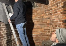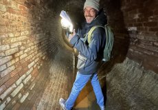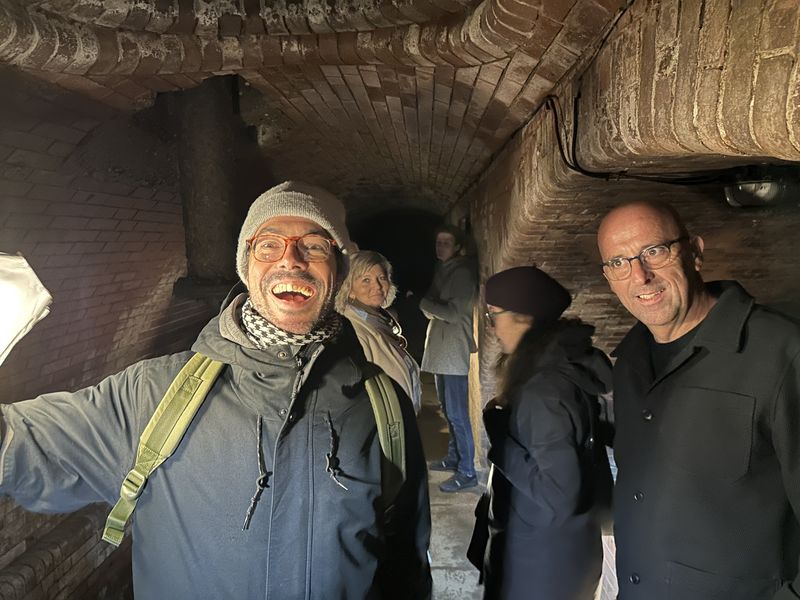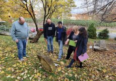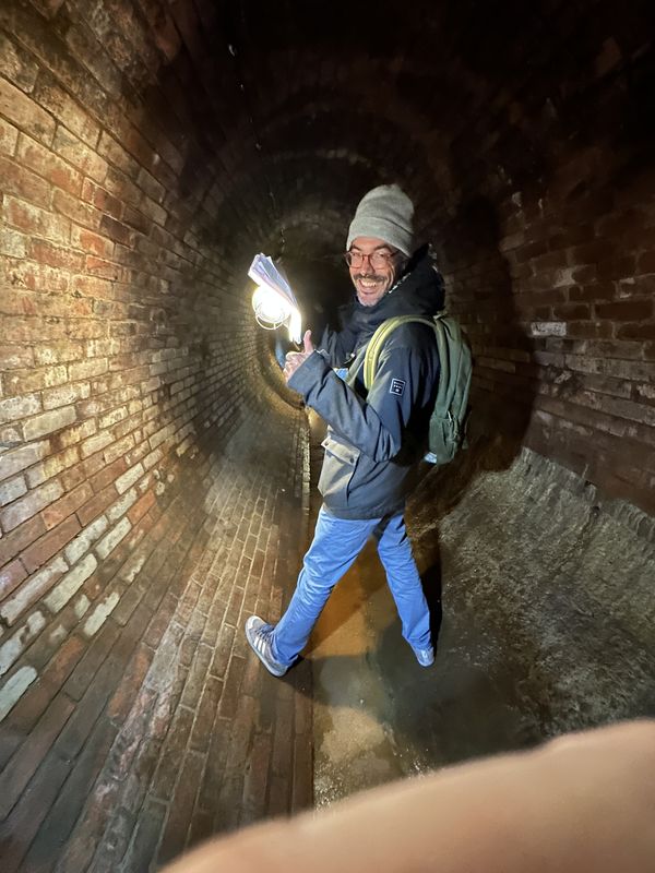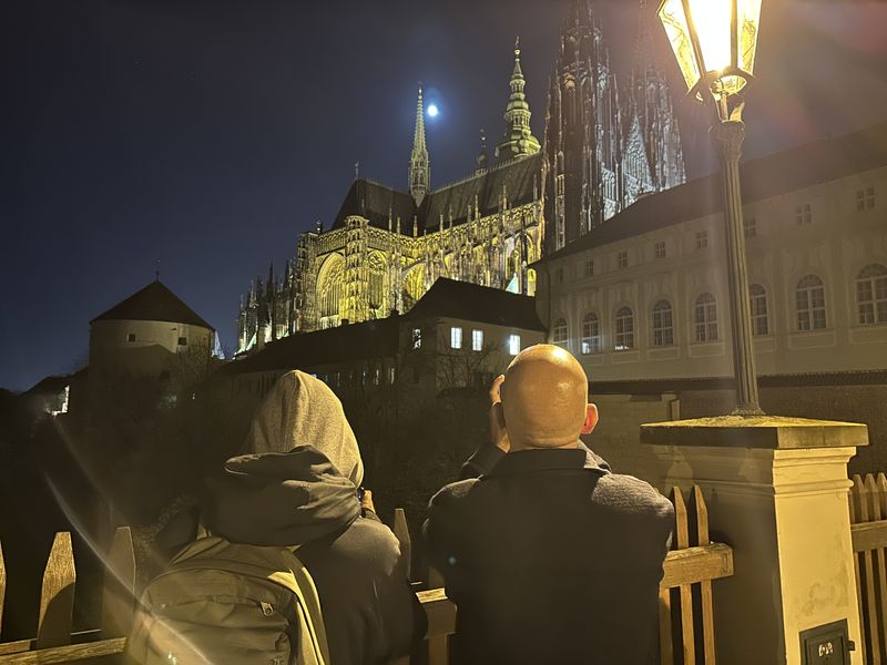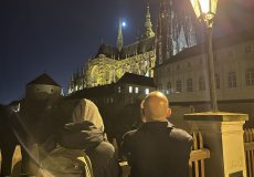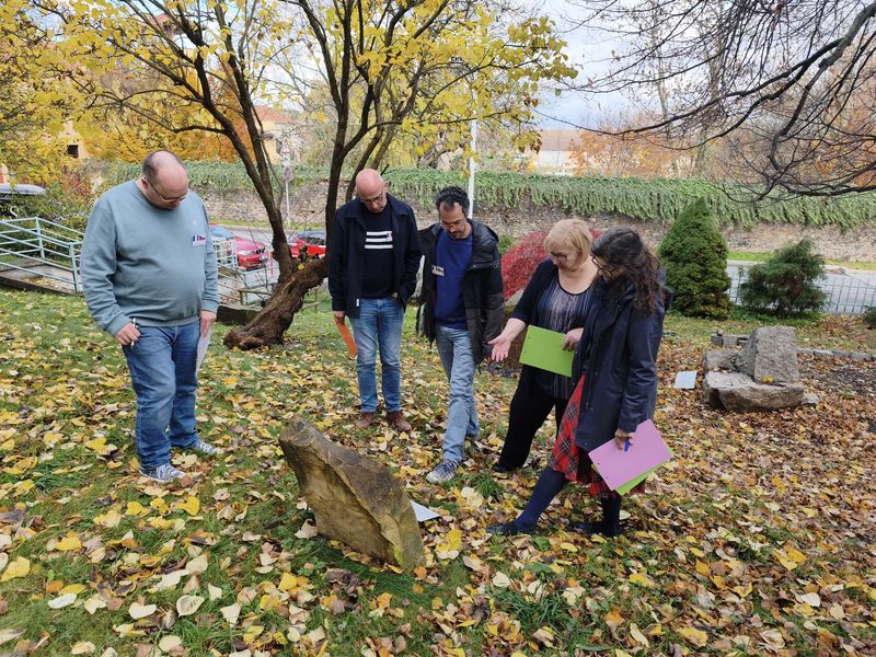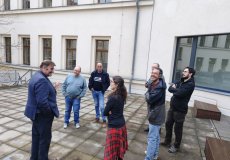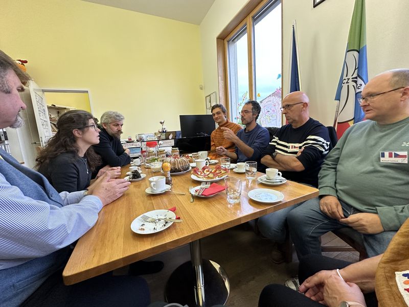 Jazykem projektu je angličtina, úvodní setkání v ředitelně (české chlebíčky a česká bábovka!) a následovná prohlídka školy byly tlumočeny do francouzštiny, pak už jsme mluvili anglicko-francouzsky, což bylo chvílema trochu divoké. Paní učitelka Lustiková připravila pro celou výpravu francouzské znění pracovních listů k našemu geoparku. Přestože Nordine učí geologii, stoprocentní úspěšnost neměl (to se ale zatím, pokud vím, nepodařilo nikomu). Pondělní oběd ve francouzském duchu se vydařil: všichni Francouzi vsadili na ratatouille, ikonický recept jihofrancouzské kuchyně. V pondělí odpoledne jsme se vydali na prohlídku krásné historické budovy bubenečské Čistírny odpadních vod postavené roku 1906. Více než hodinová prohlídka obsahovala adrenalinové prvky, jako jízda na lodičce a průchod vypuštěnou stokou, a před večerní plánovanou procházkou po Pražském hradě jsme pěkně promrzli. Proto jsme naše kolegy vzali zahřát se do Dejvické sokolovny, kde poprvé ochutnali poklady české kuchyně, jako utopenec a nakládaný hermelín (které zrovna nezahřejí). Na hradě nebyli turisté a výhled na světélkující večerní Prahu byl úchvatný.