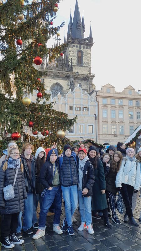 V předvánočním čase se třída 7.B vydala na exkurzi po Praze. Prošli jsme část Královské cesty a děti se dozvěděly zajímavosti k významným pražským památkám. Trasa započala u Obecního domu, okolo Prašné brány jsme Celetnou ulicí pokračovali na Staroměstské náměstí. Na Staroměstském náměstí jsme obdivovali Týnský chrám, Staroměstskou radnici s orlojem a nasáli vánoční atmosféru na tamních vánočních trzích. Z Královské cesty jsme poté odbočili do Betlémské kaple, kde jsme navštívili vánoční výstavu betlémů. Byly zde k vidění betlémy vytvořené z rozličných materiálů, jako jsou foukané sklo, dřevo, sláma, keramika i kov. Po návštěvě výstavy jsme se vydali dále Karlovou ulicí kolem Klementina na Karlův most. Naší exkurzi jsme zakončili na Malostranském náměstí. Cestou jsme využili interaktivní mobilní aplikaci, díky které jsme si kromě informací k jednotlivým památkám mohli prohlédnout historické fotografie těchto míst a závěrem ověřit své znalosti. Třída si tuto předvánoční exkurzi velmi užila a těšíme se, že se z ní stane naše každoroční tradice.