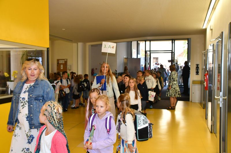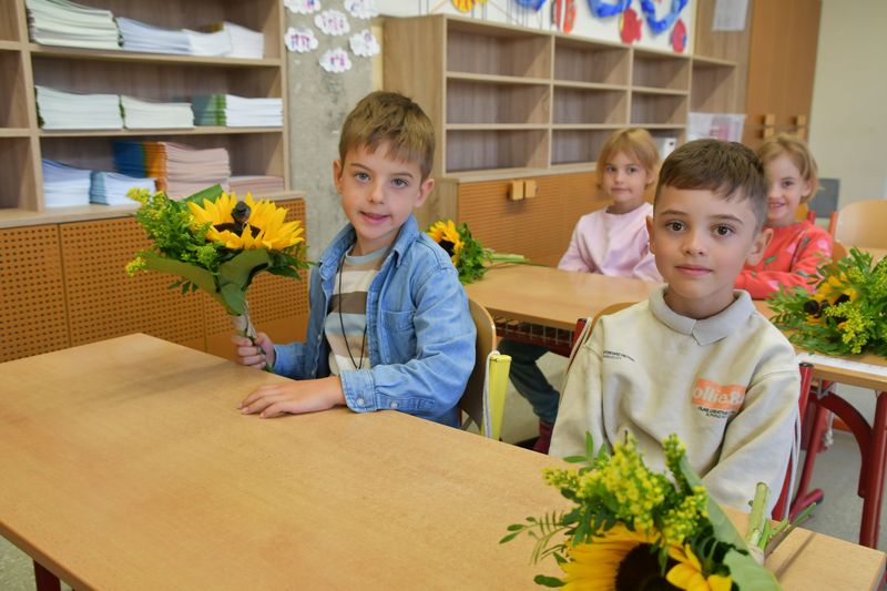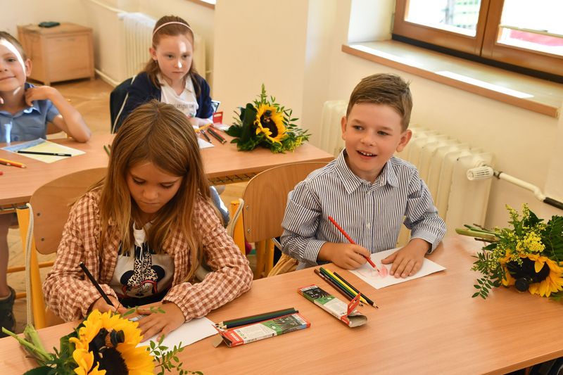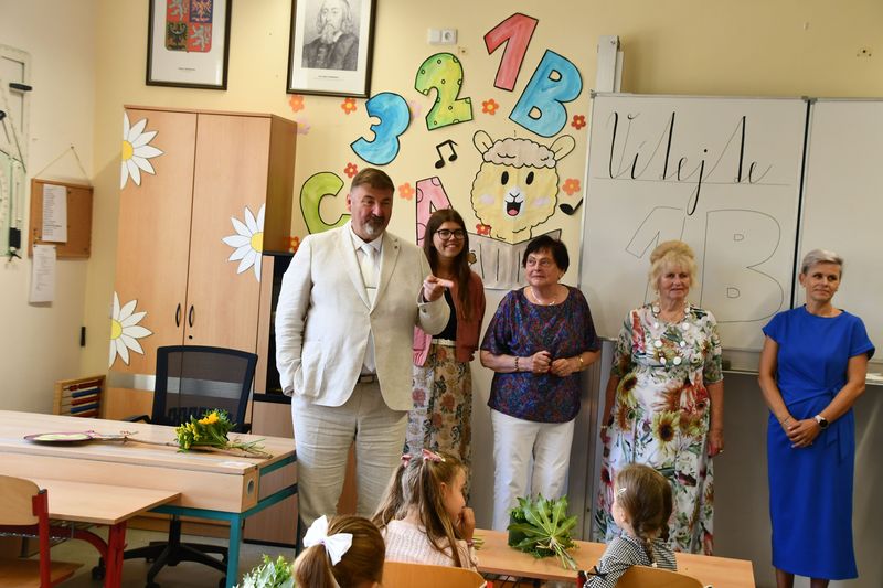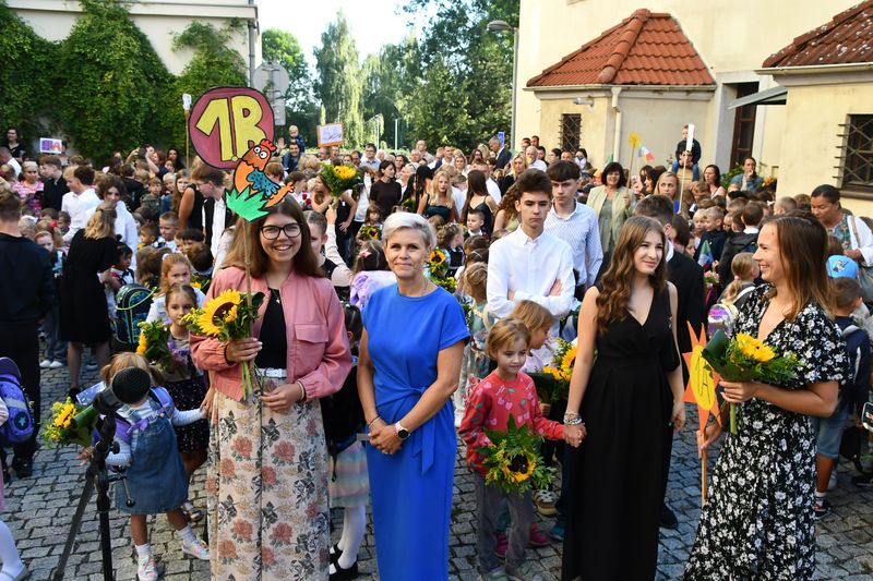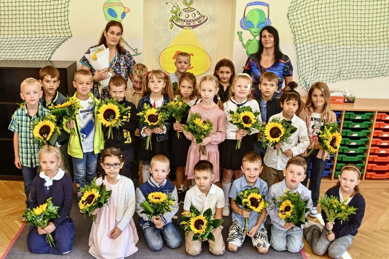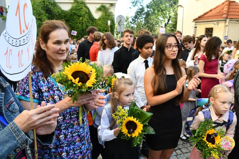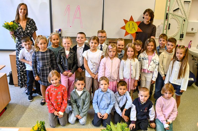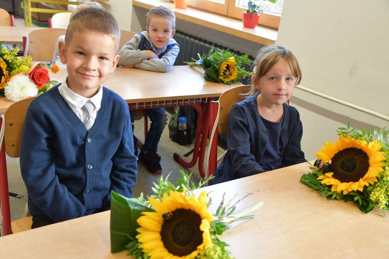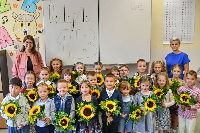 Začátek školního roku proběhl na rynku školy v duchu dobré letní nálady. I když se všude tísnili rodiče a příbuzní prvňáčků, děti se nakonec prodraly ke svým třídám podle cedulí, kterými mávali nad hlavami jejich třídní učitelé.