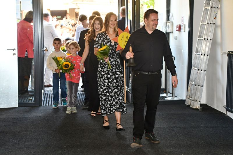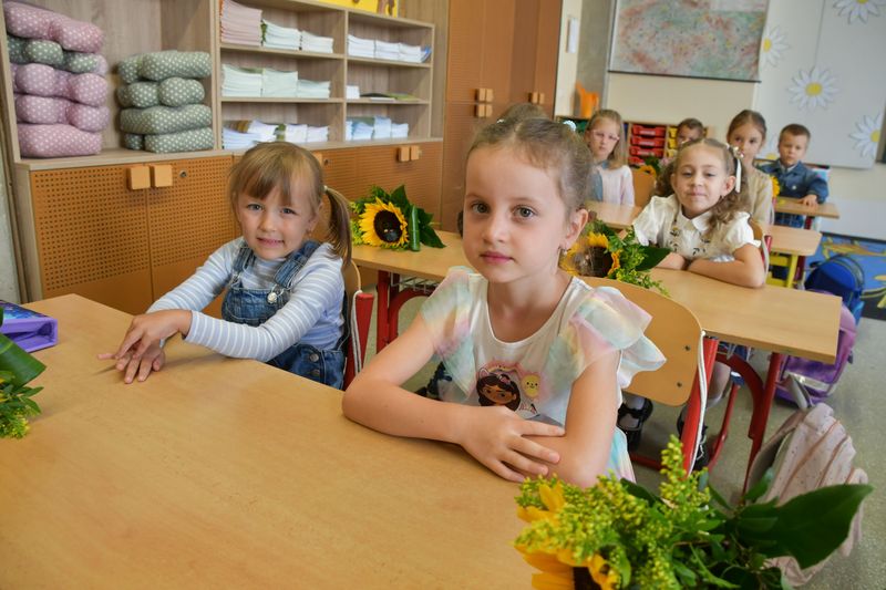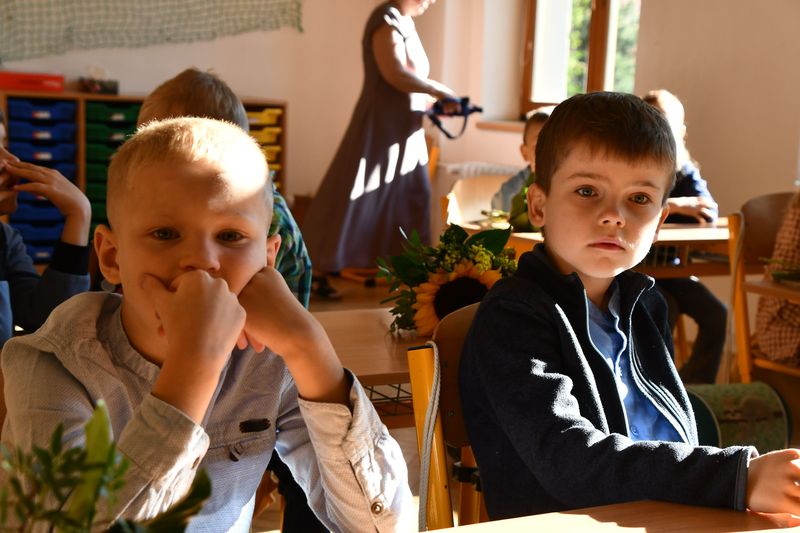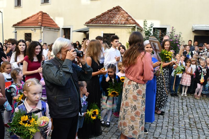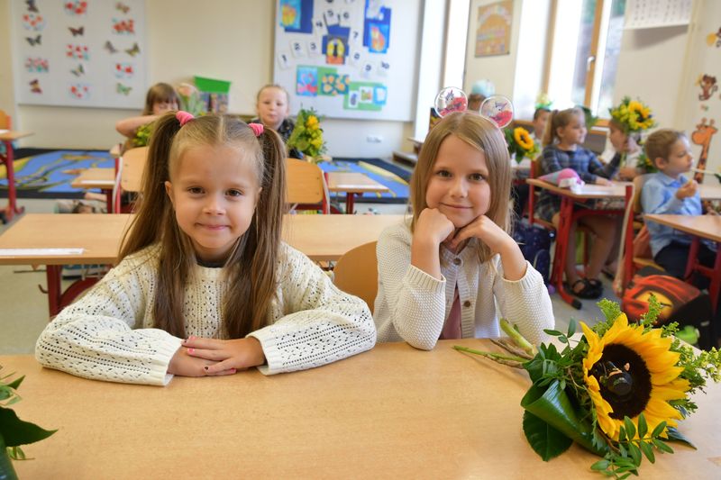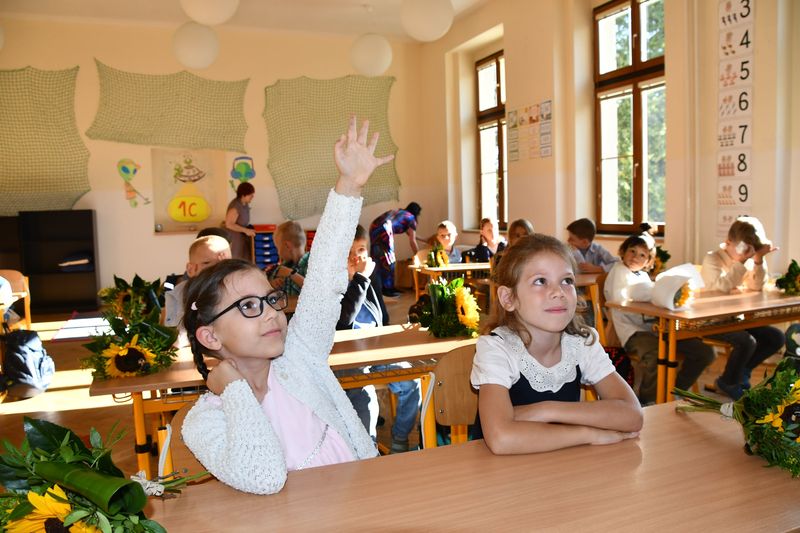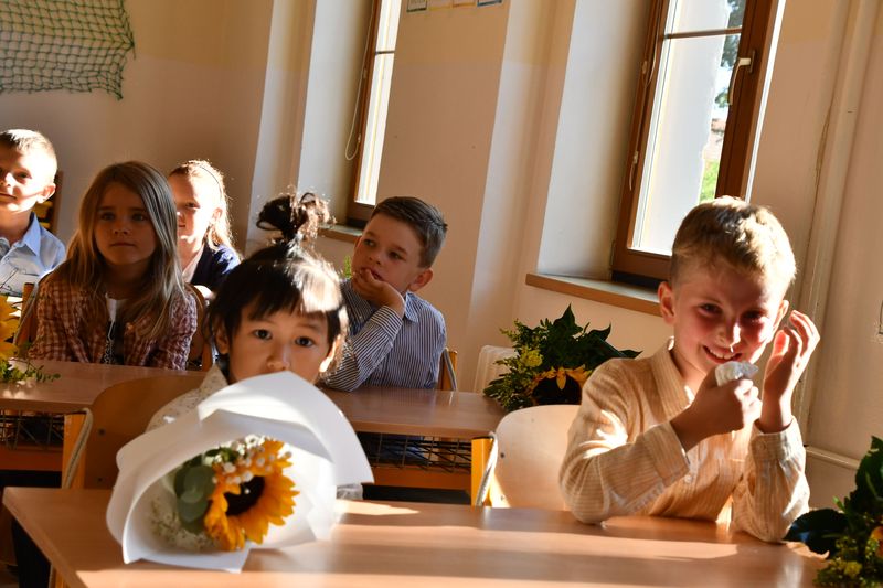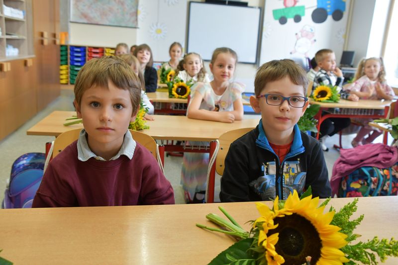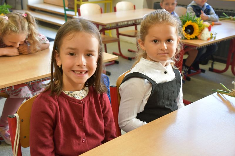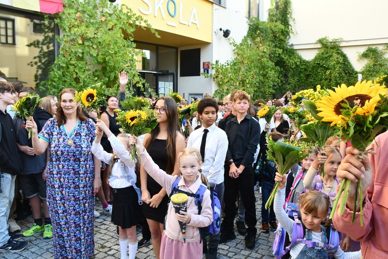 Začátek školního roku proběhl na rynku školy v duchu dobré letní nálady. I když se všude tísnili rodiče a příbuzní prvňáčků, děti se nakonec prodraly ke svým třídám podle cedulí, kterými mávali nad hlavami jejich třídní učitelé.